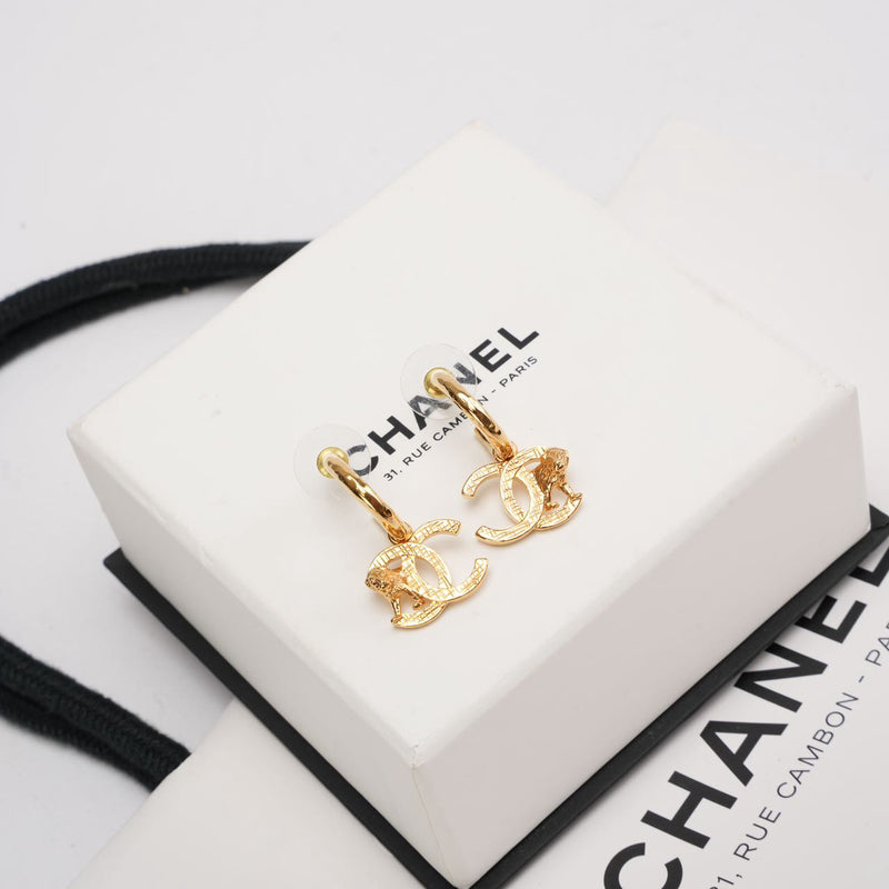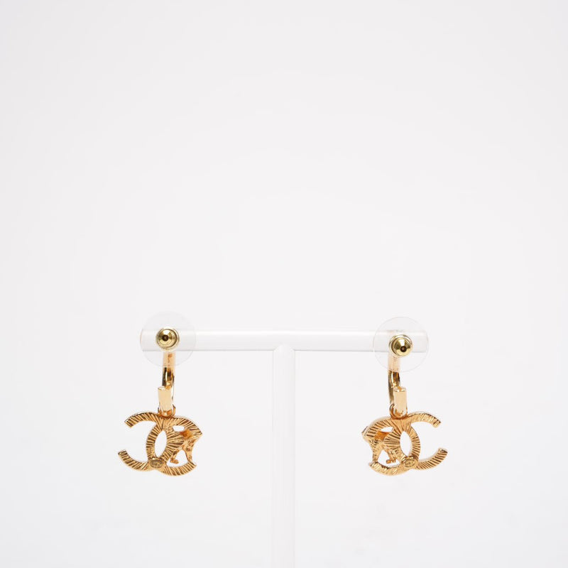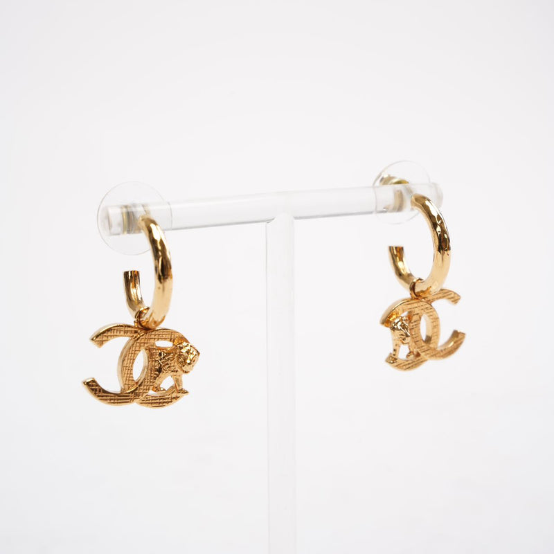 Chanel Gold Tone Metal CC Mark Lion Hoop Earring