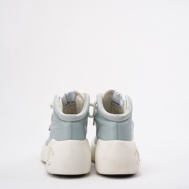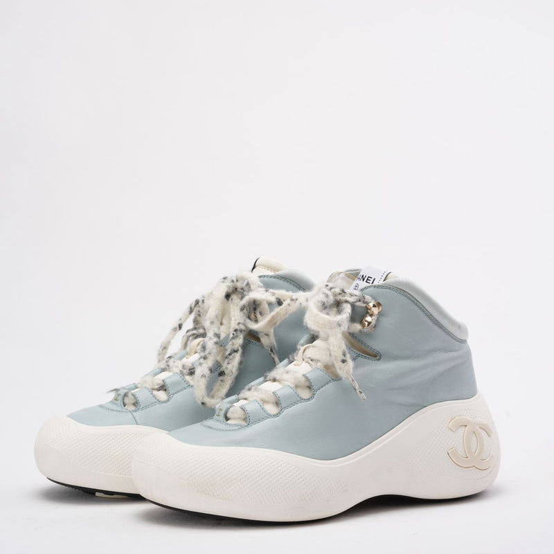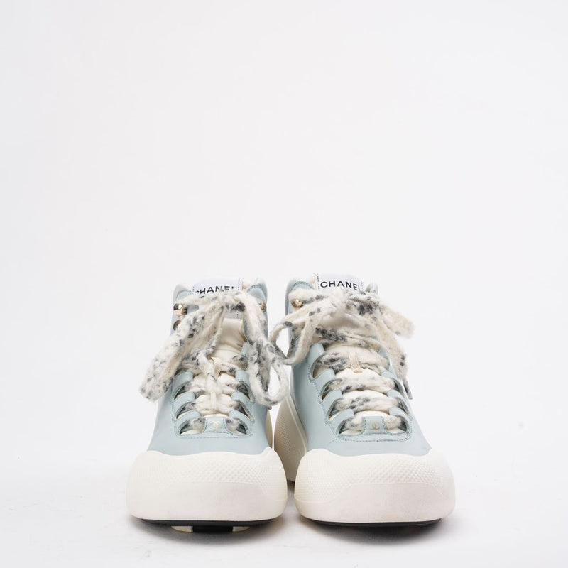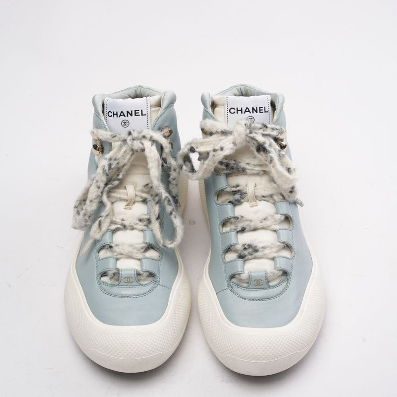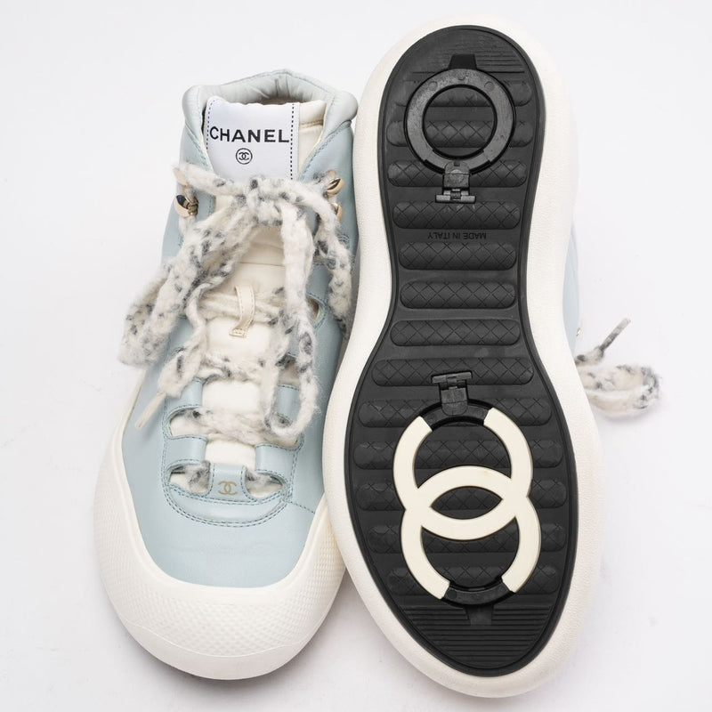 Chanel Light Blue/White Snow CC Logo Top Ankle Boots 39.5