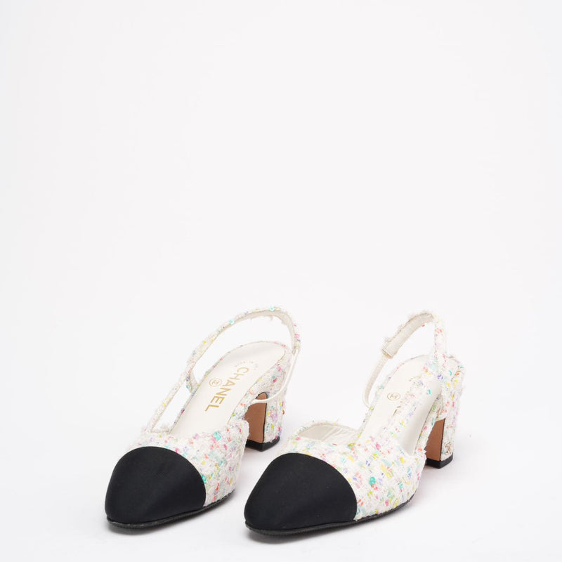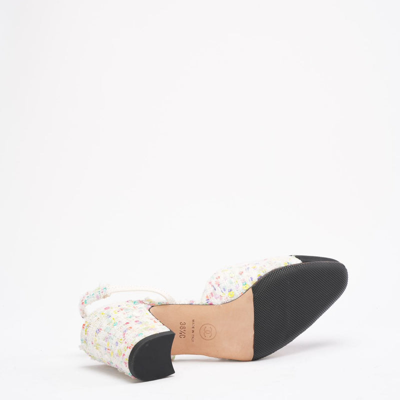 Chanel Multicolor Tweed CC Logo Slingback Pumps Size 38 ½