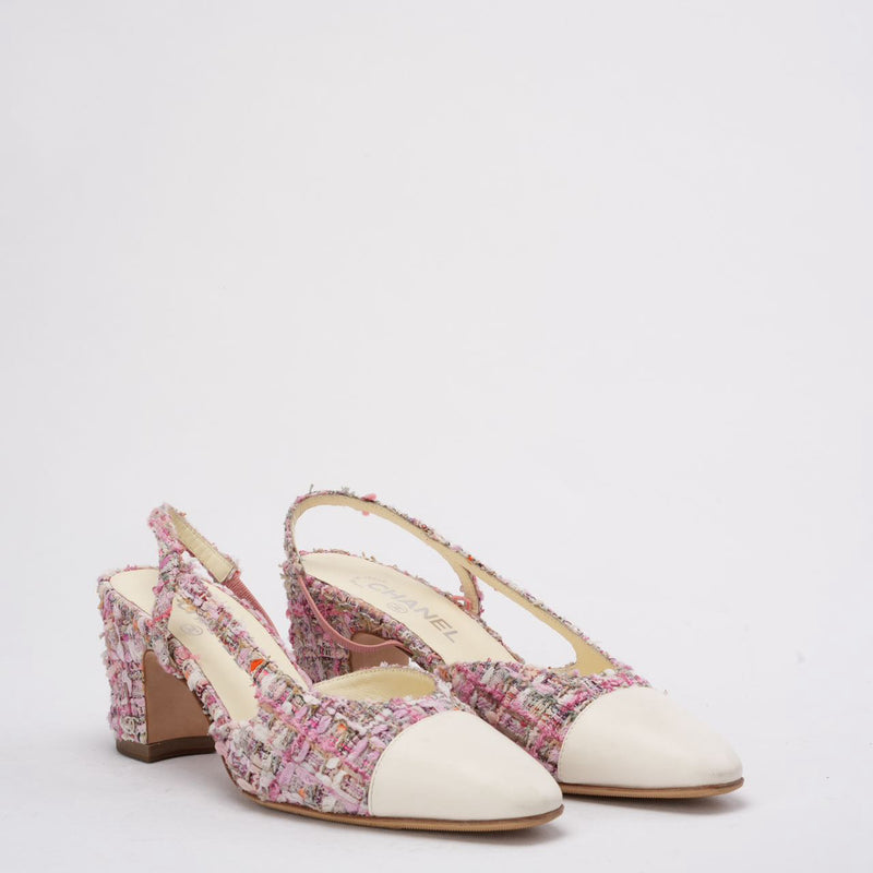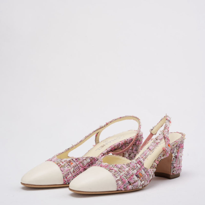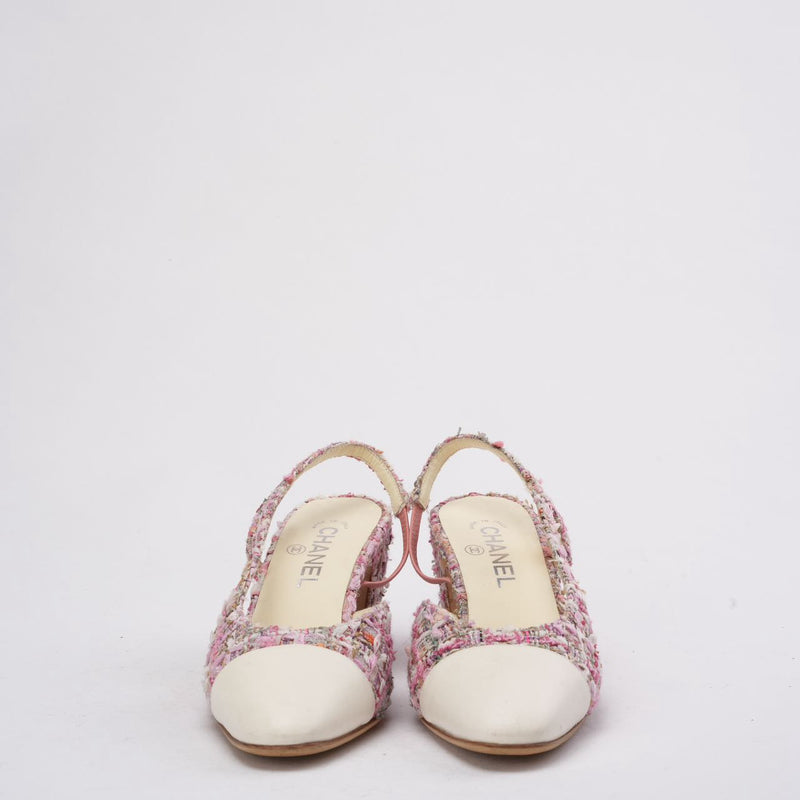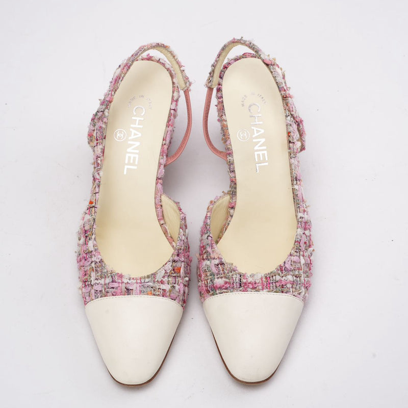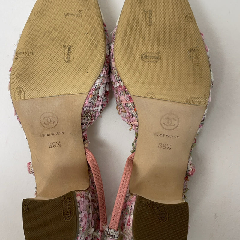 Chanel Pink and White Tweed Slingback Sandals 39.5