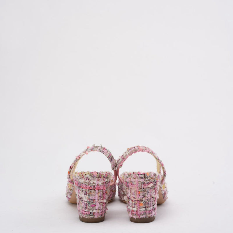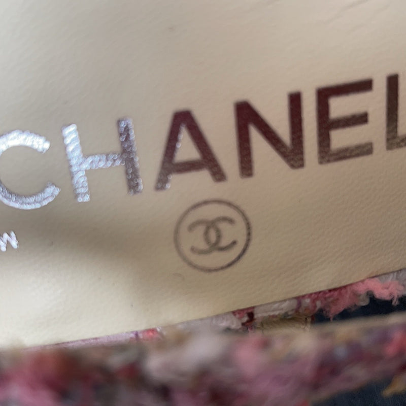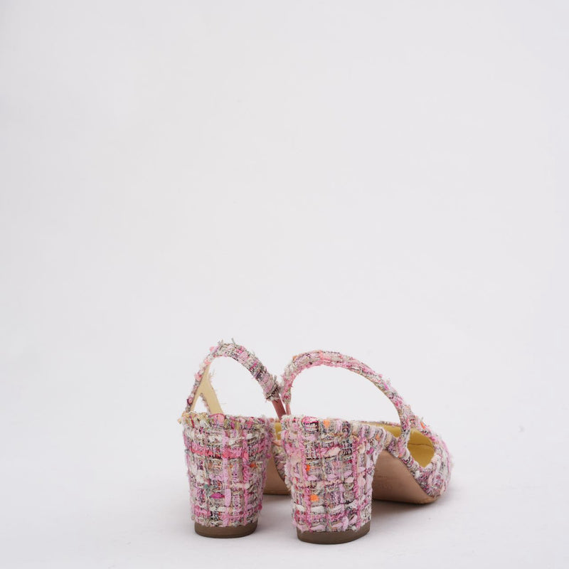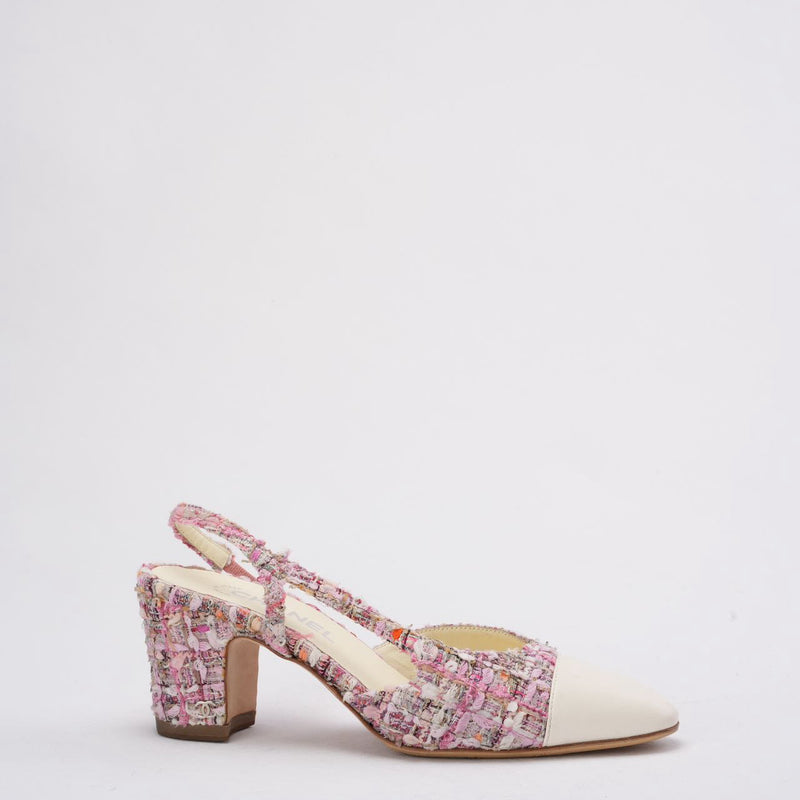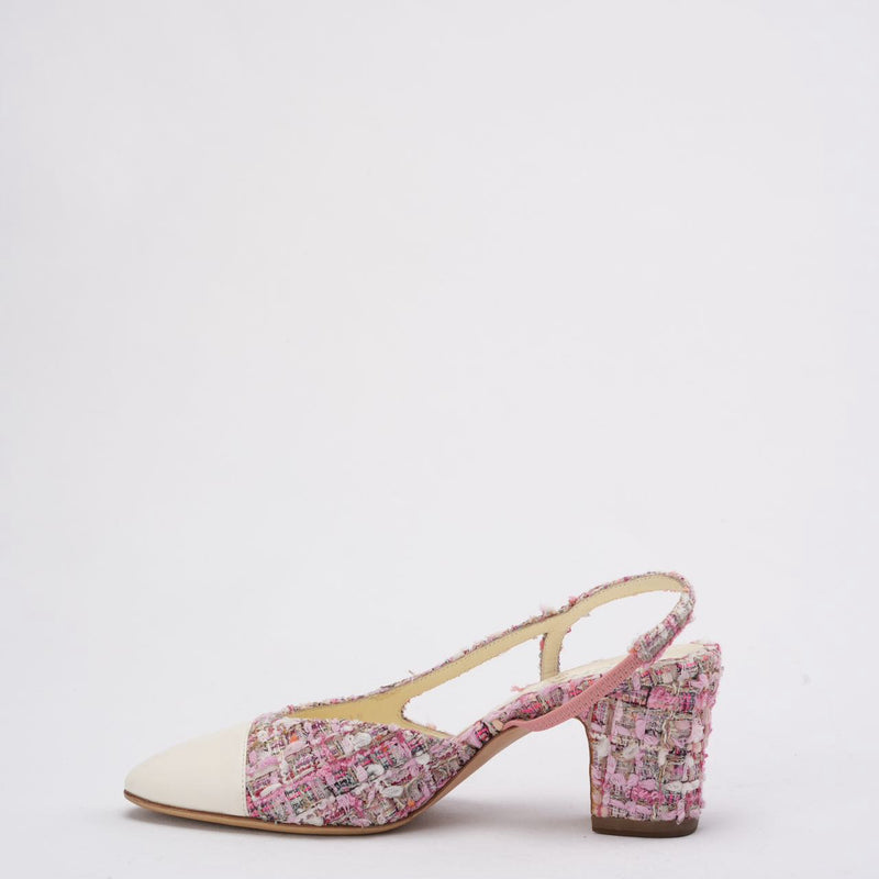 Chanel Pink and White Tweed Slingback Sandals 39.5