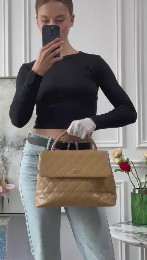Chanel Vintage Kelly Top Handle Flap Bag Beige Caviar