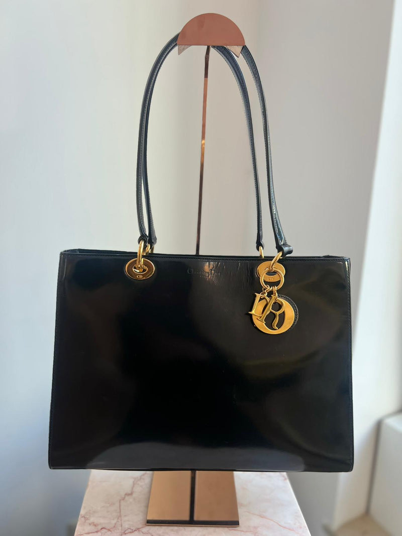 The large size provides generous interior space, making it ideal for daily use or work, while the signature Dior letter charms add an unmistakable touch of luxury. With its top handles and polished finish, it transitions seamlessly from day to evening.