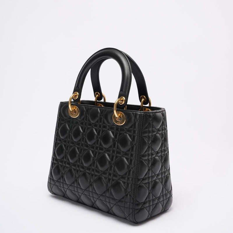 Christian Dior Lady Dior Medium Bag Black Lambskin Leather