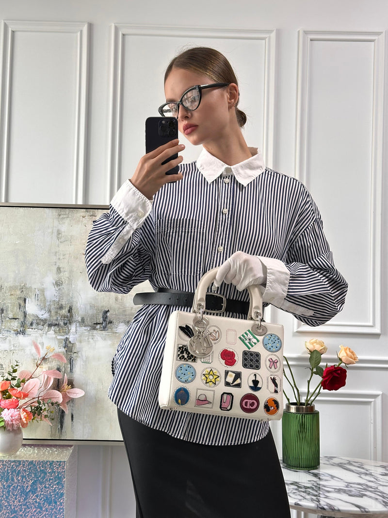 Christian Dior White Leather Lady Dior Bag Patch Embellished Medium