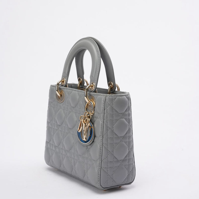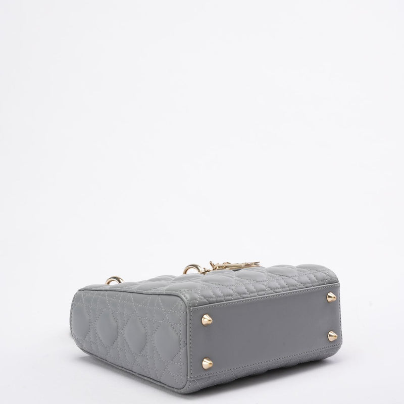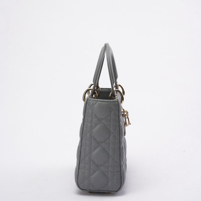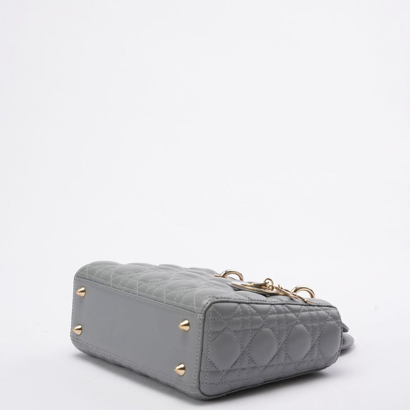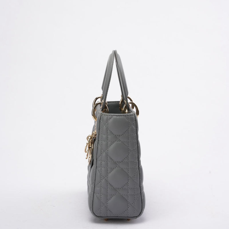 Lady Dior Grey, the Christian Dior The 2019 My ABCDior Bag is a sophisticated representation of classic craftsmanship and contemporary elegance. Finished with gold-tone hardware and crafted from soft grey lambskin leather with Cannage stitching, this iconic bag has the signature "D.I.O.R." charms that lend a touch of sophistication and charm.