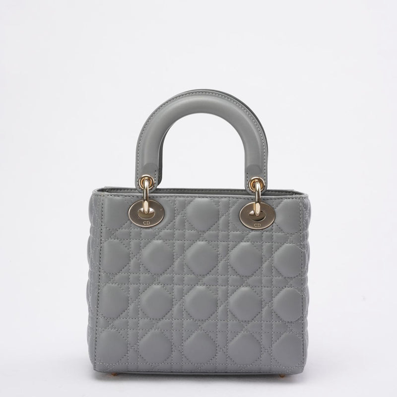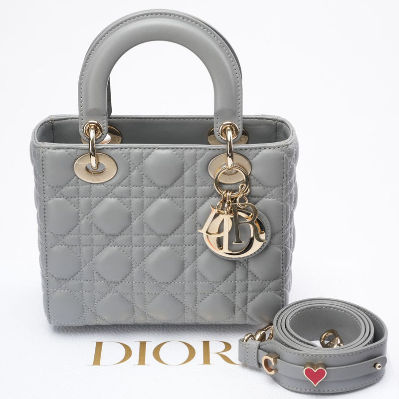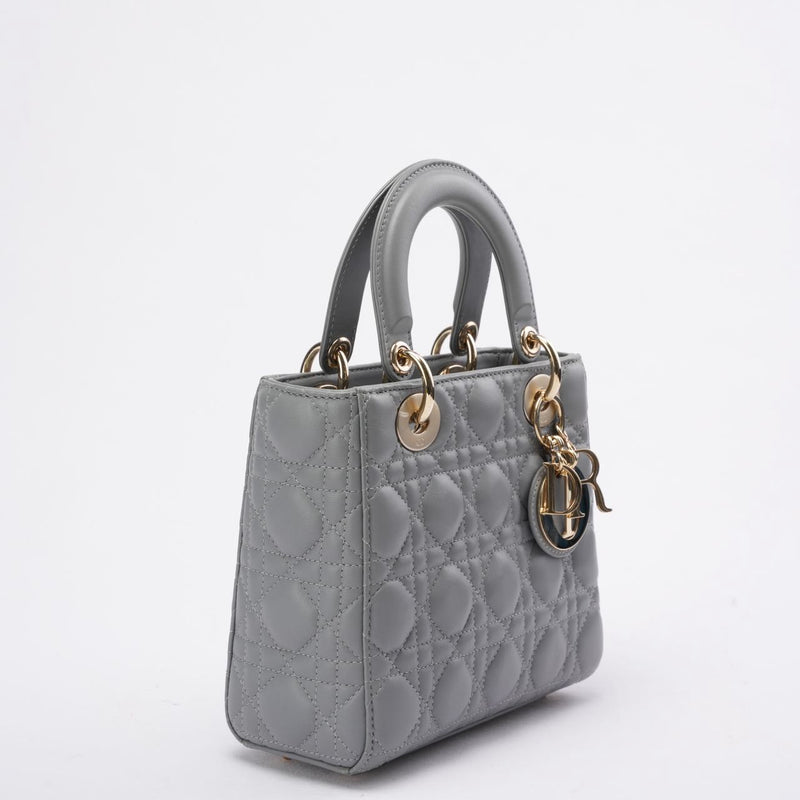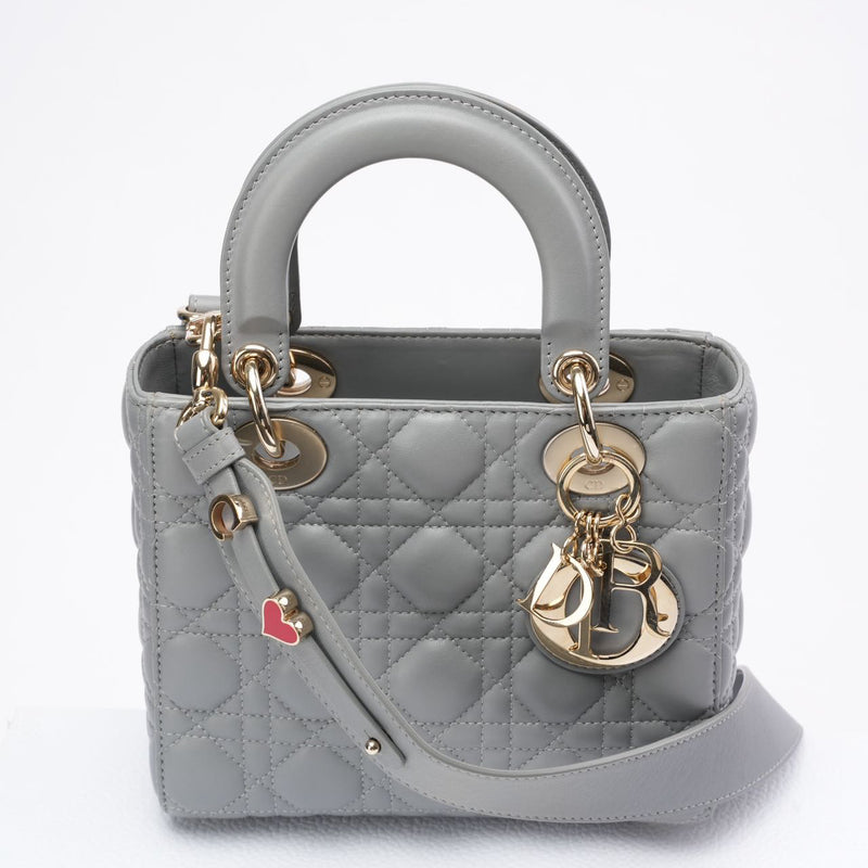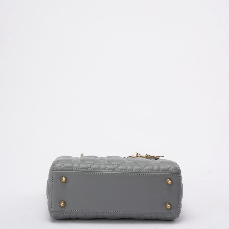 Lady Dior Grey, the Christian Dior The 2019 My ABCDior Bag is a sophisticated representation of classic craftsmanship and contemporary elegance. Finished with gold-tone hardware and crafted from soft grey lambskin leather with Cannage stitching, this iconic bag has the signature "D.I.O.R." charms that lend a touch of sophistication and charm.