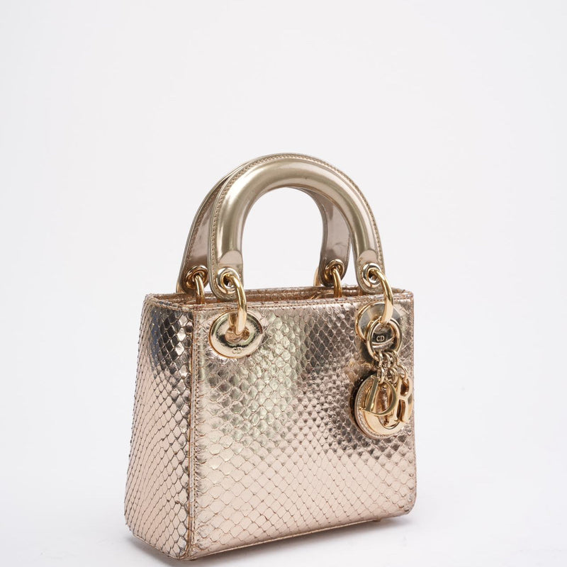 Dior Mini Lady Dior Bag Gold in Python Leather 2014