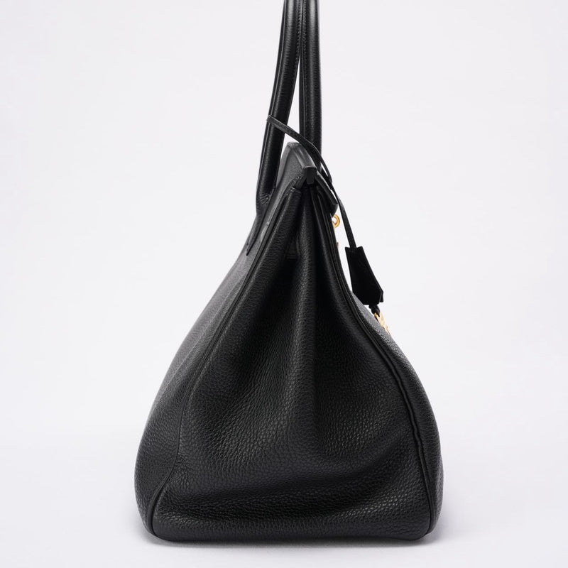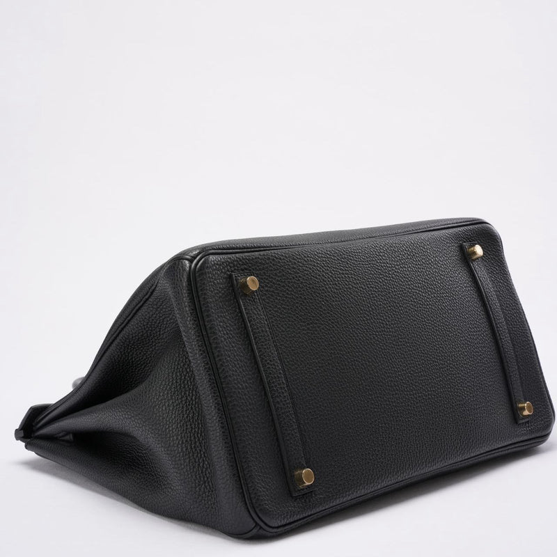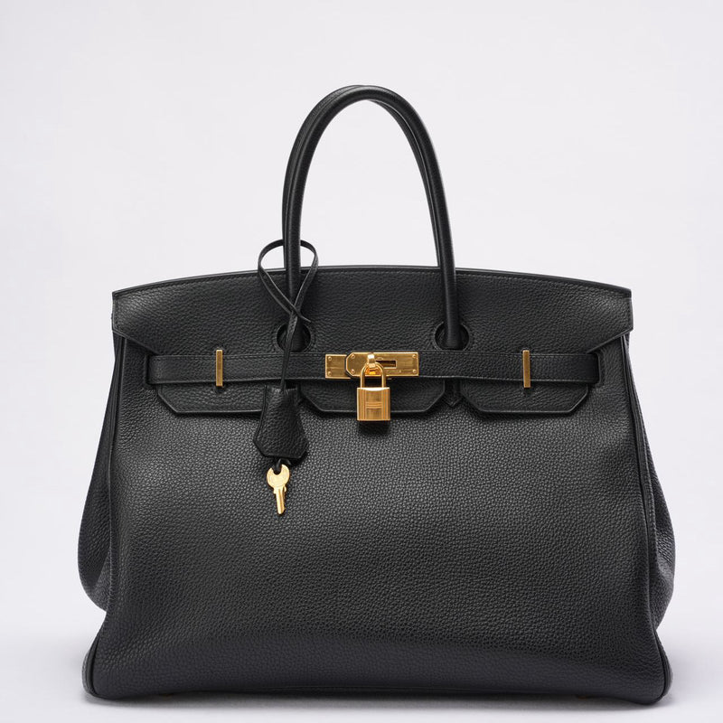 The pinnacle of classic elegance and long-lasting luxury is the Hermès Birkin 35 in Black Togo Leather (2012). This classic handbag is expertly made from soft and resilient Togo leather and has the distinctive gold hardware that contrasts beautifully with the deep black color. It is ideal for everyday use or travel because of its roomy 35 cm silhouette and structured design, which combine functionality and style. For a sophisticated, impactful look, the Birkin 35 can be carried by hand or in the crook of the arm thanks to its top handles and secure flap closure.