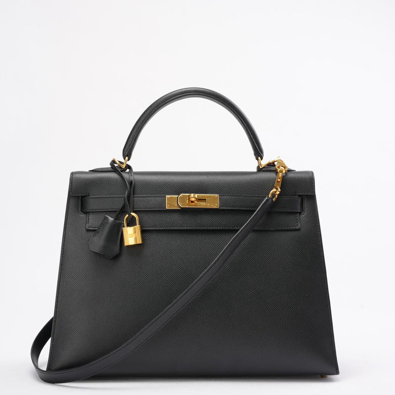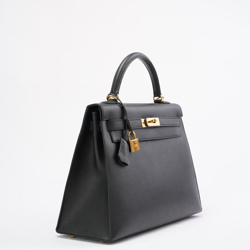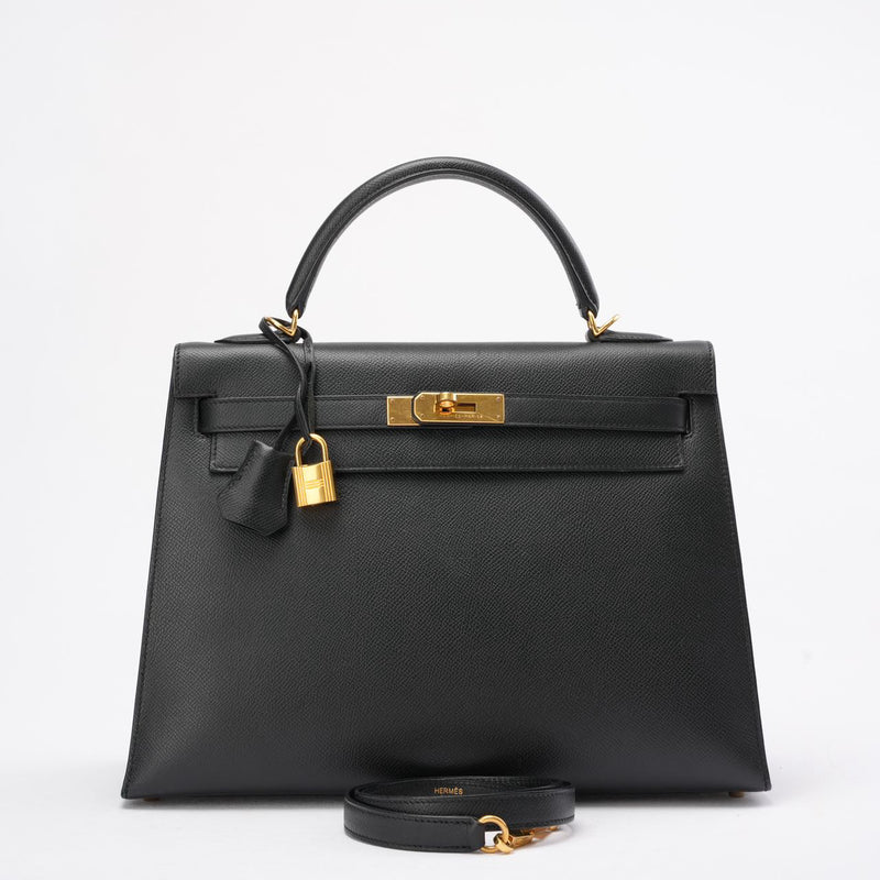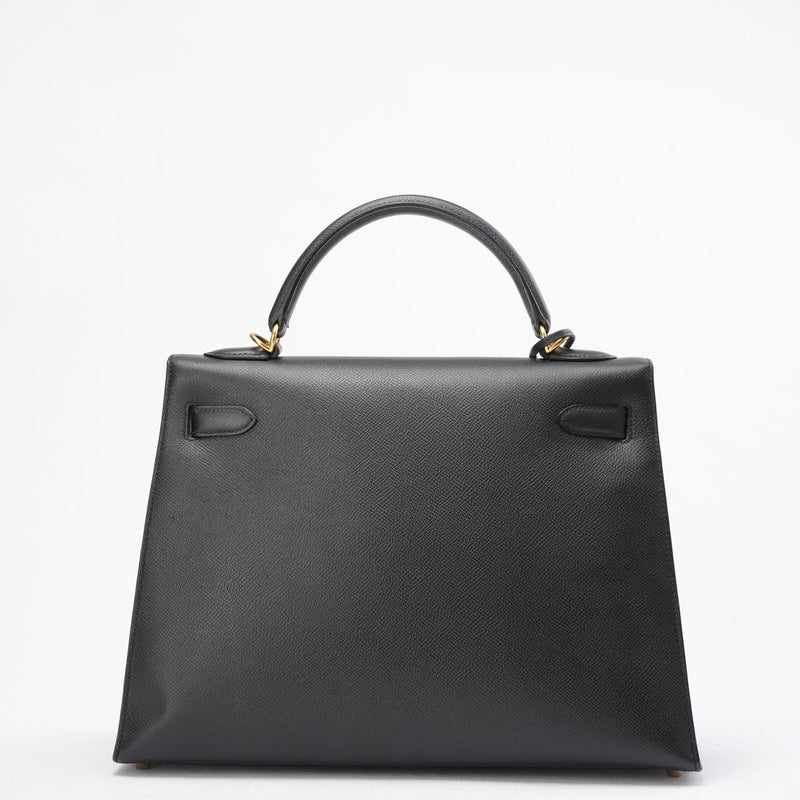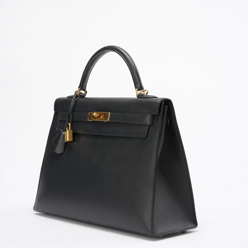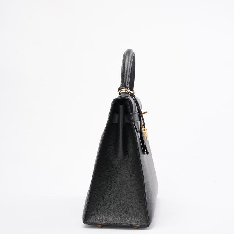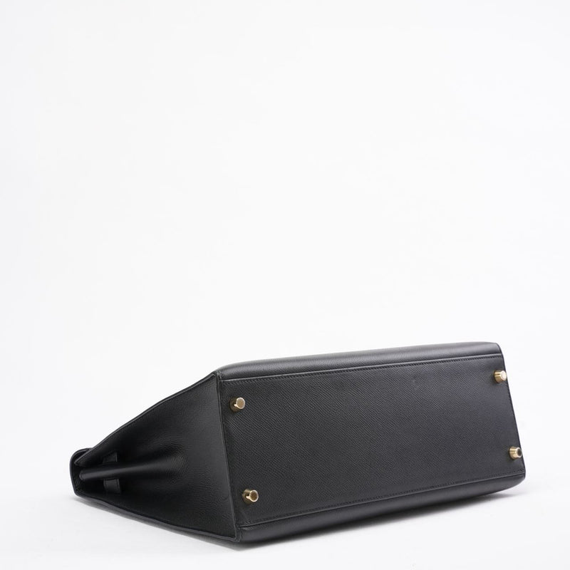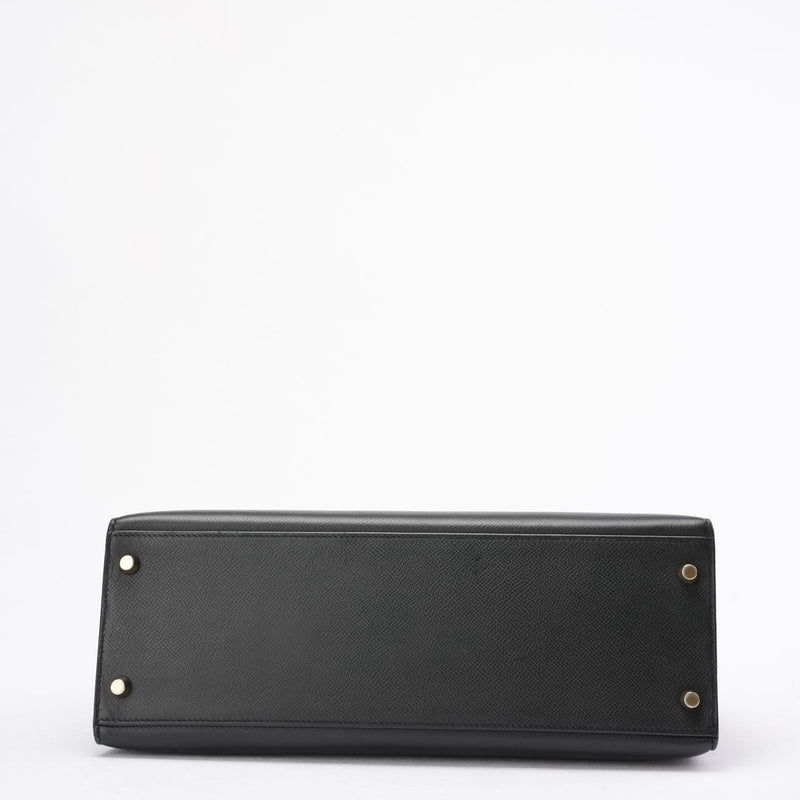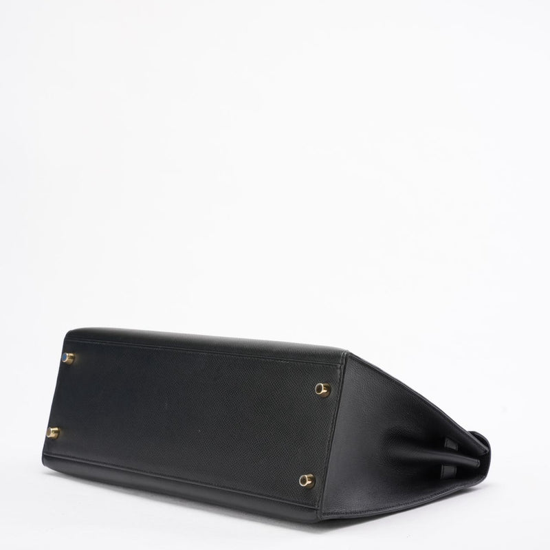 Crafted from durable Epsom leather, known for its lightweight yet rigid texture and subtle sheen, this Kelly offers both resilience and an elegant finish. The gold-plated hardware complements the black tone beautifully, adding a touch of understated luxury.