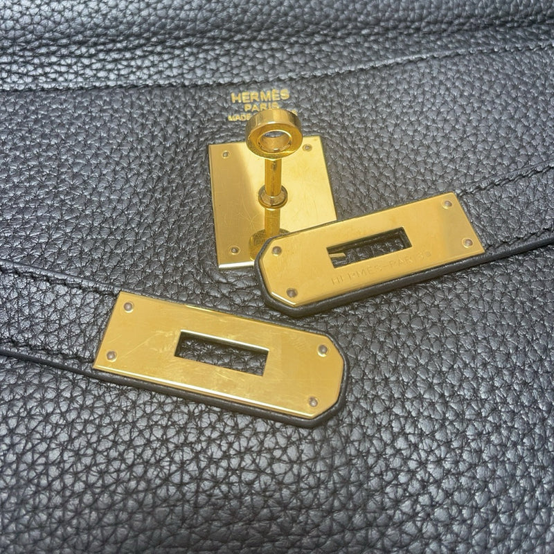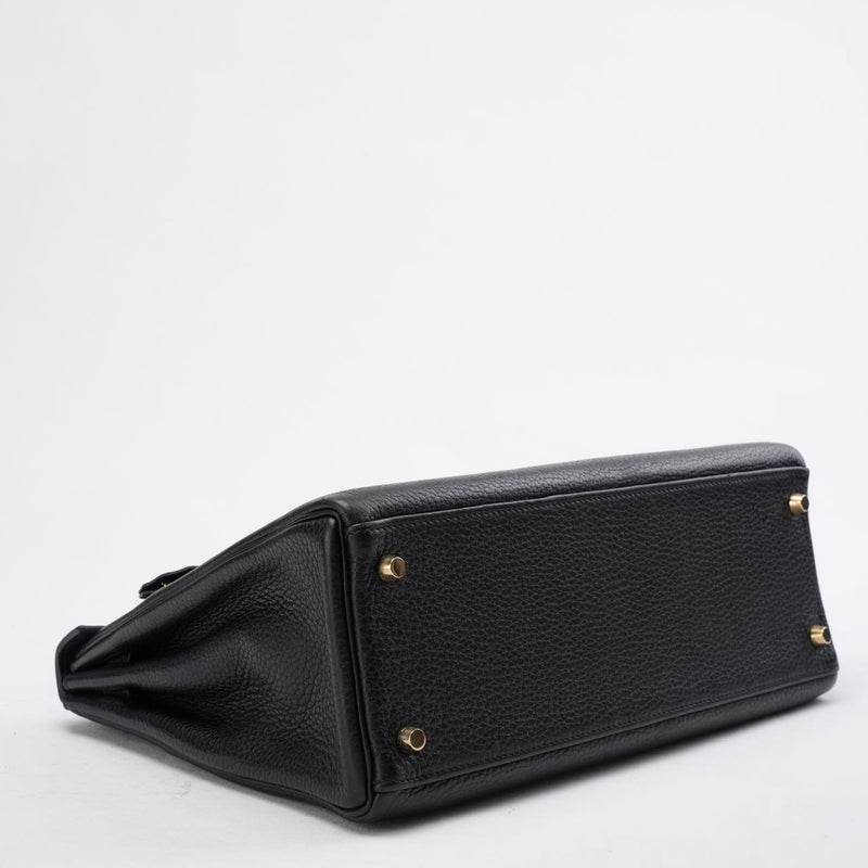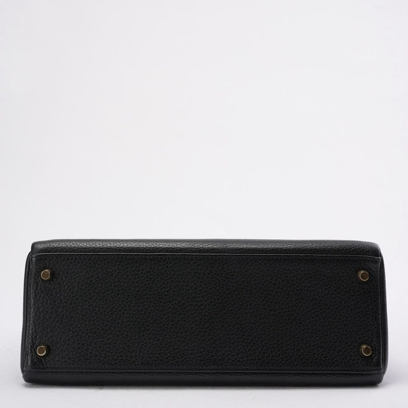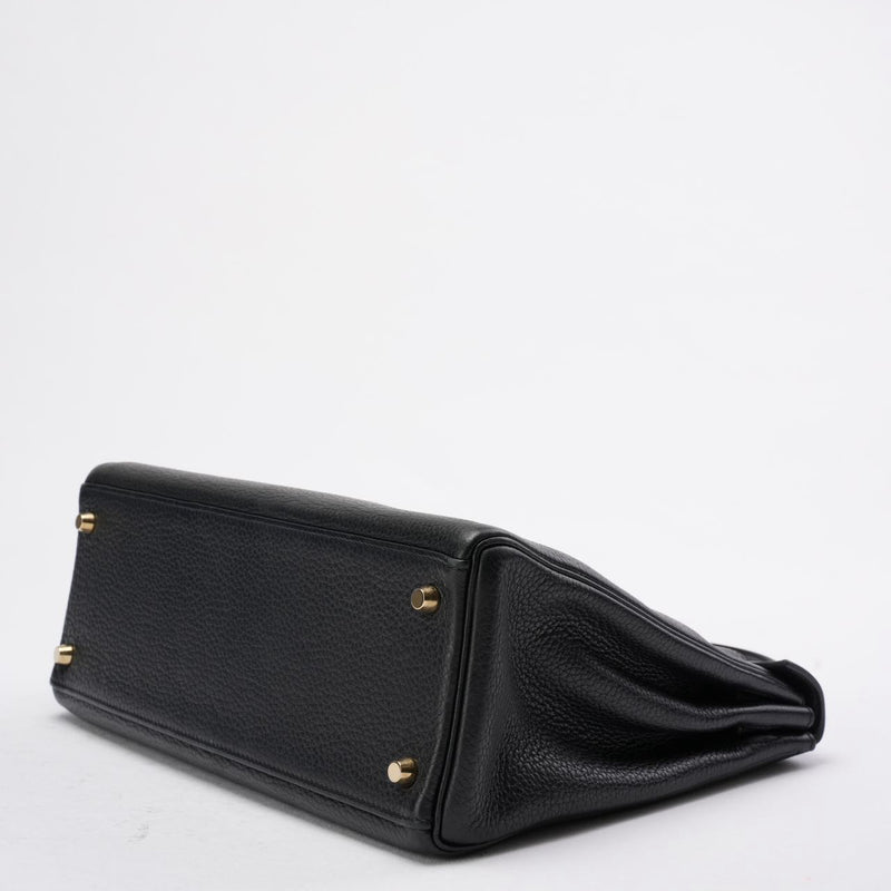Made from durable and supple Togo leather, the Kelly 32 maintains its structured silhouette while remaining soft to the touch. The warm gold hardware adds a refined accent, perfectly complementing the deep black leather.