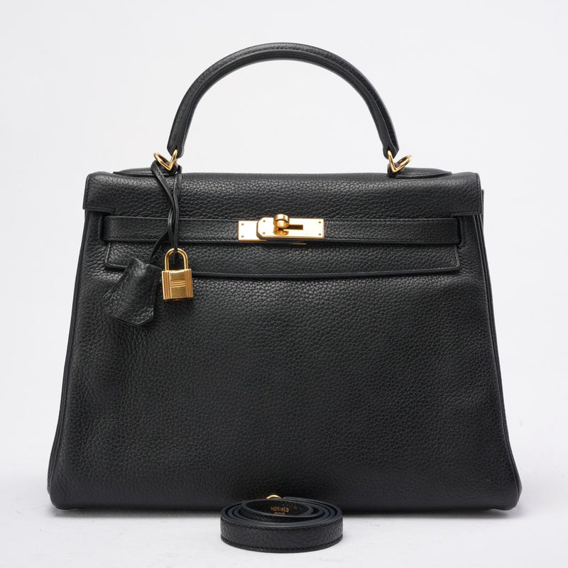 Hermes Kelly 32 Black Togo Leather Bag with Gold Hardware (Retourne)