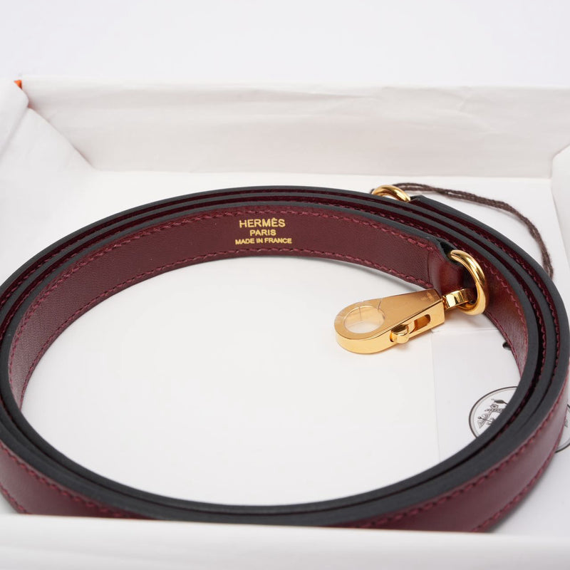 The Hermès Kelly Shoulder Strap in Burgundy Leather is a luxurious and practical accessory designed to complement your Hermès handbag collection. Crafted from rich burgundy leather with exquisite attention to detail, it features gold-tone hardware and the signature Hermès craftsmanship that ensures durability and elegance.