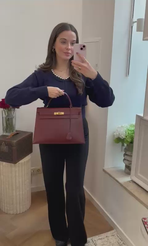This Kelly 32, a representation of classic elegance, can be worn crossbody with its detachable shoulder strap for contemporary versatility or carried by hand for a refined, sophisticated appearance. Also, have a look at the shoulder strap for preloved Kelly burgundy.
