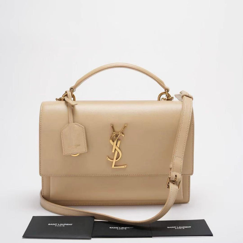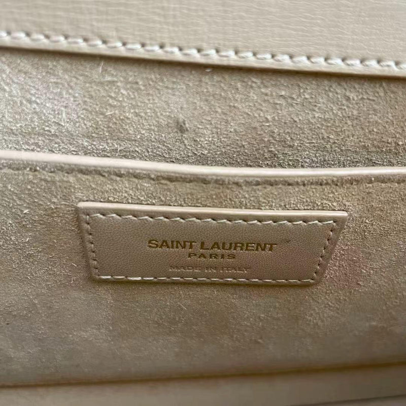 Saint Laurent Sunset Bag Medium Calfskin Monogram Beige with Gold Hardware